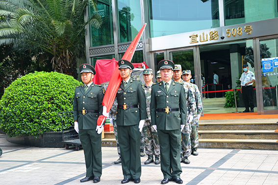 上午,景鴻集團武裝部在大樓前舉行升國旗儀式,國旗護衛隊護衛鮮艷的五星紅旗步入廣場,伴隨雄壯的國歌聲,全體黨員向冉冉升起的國旗行注目禮。