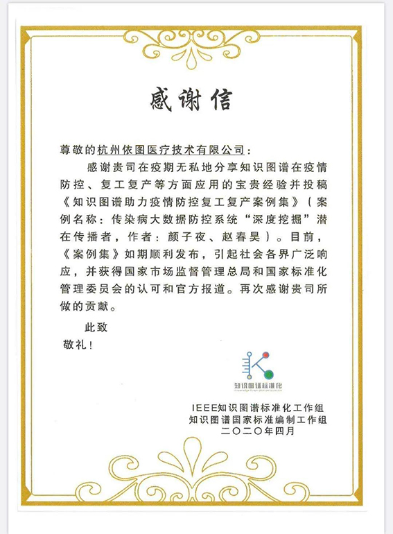 近日,由工信部中國電子技術標準化研究院牽頭編制的《知識圖譜助力疫情防控和復工復產案例集》(以下簡稱“《案例集》”)正式發布。依圖自主研發的傳染病大數據防控系統應用入選《案例集》,并被國家市場監督管理總局和國家標準化管理委員會作為知識圖譜領域的好經驗、好做法進行推廣。