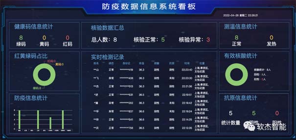 據(jù)軟杰智能官方介紹,這套健康碼核驗解決方案能實現(xiàn)“健康碼核查+身份證核查+體溫檢測+口罩檢測”一體式核查,可以實時顯示健康碼情況、核酸記錄、疫苗接種情況等信息?,F(xiàn)場實例如下:
